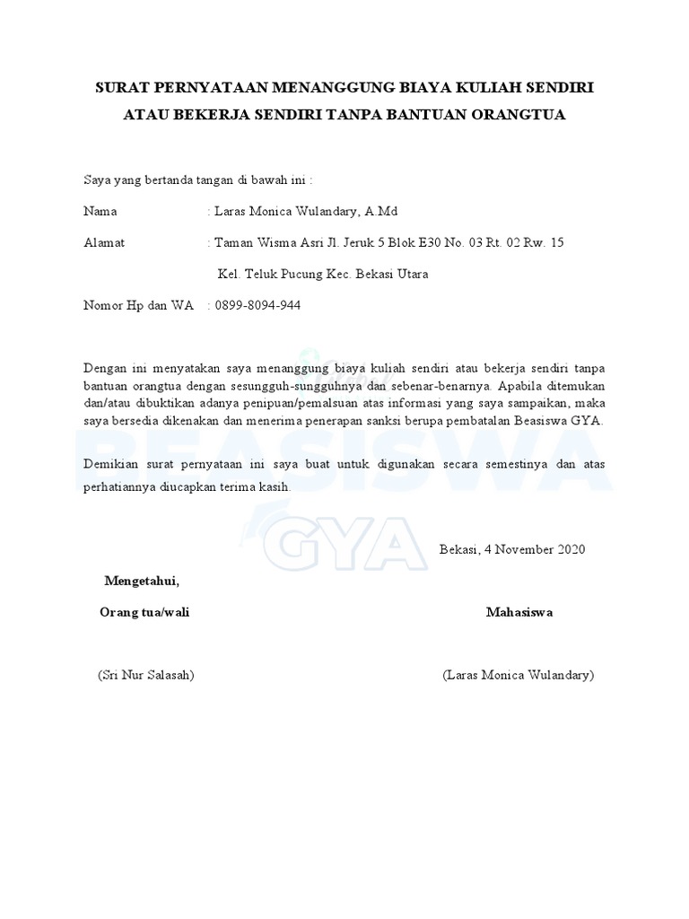 Check spelling or type a new query. Surat pernyataan keabsahan dokumen beasiswa gya. We did not find results for: Maybe you would like to learn more about one of these?